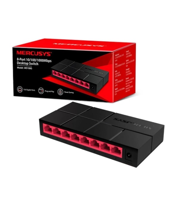 Comparte archivos, impresoras y conexión a Internet con múltiples equipos simultáneamente.Gracias a Mercusys MS108G, podrás conectar diferentes dispositivos a través de sus puertos y optimizar su rendimiento, velocidad y seguridad.